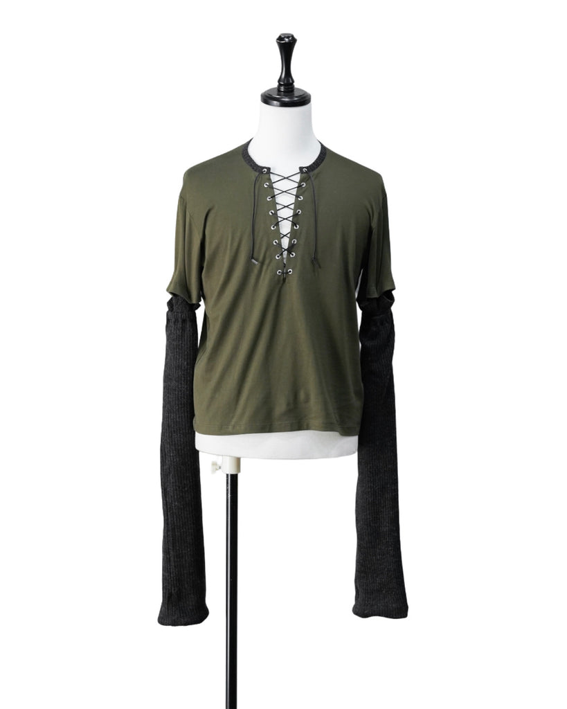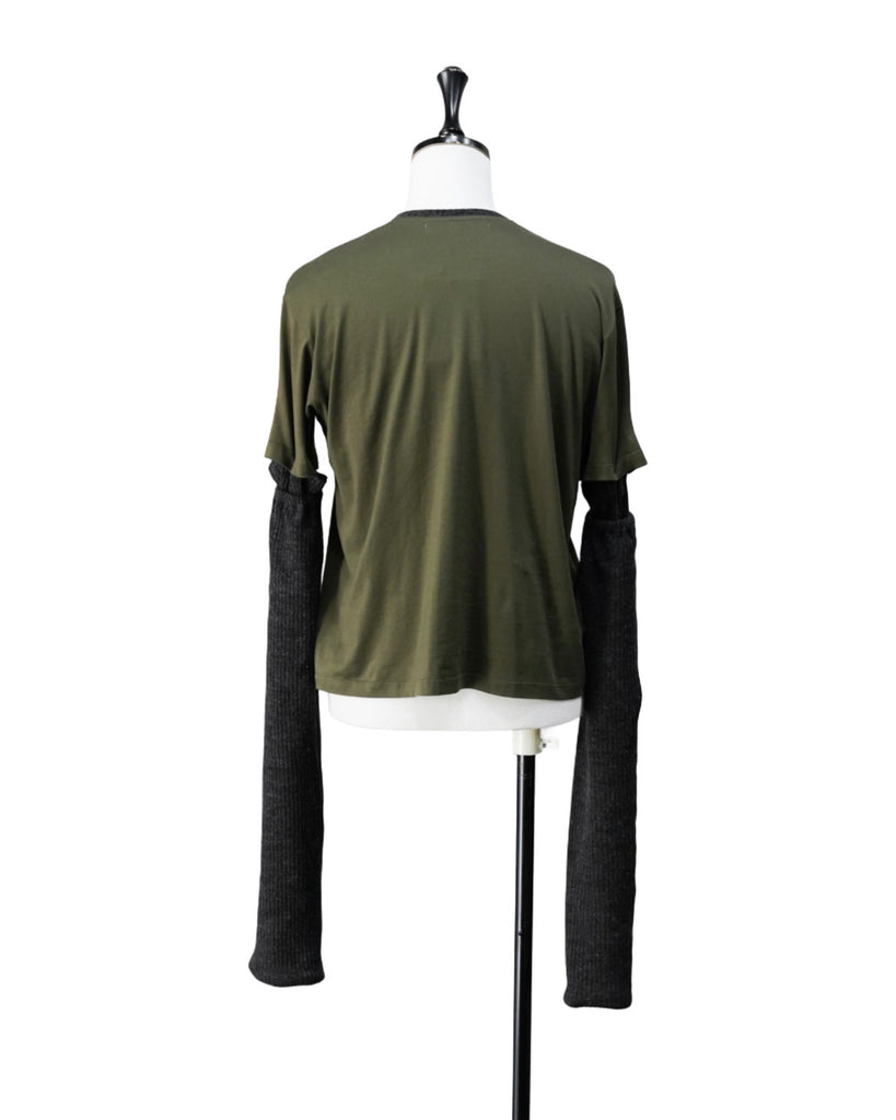 RIB SLEEVE TOP(KAHKI)