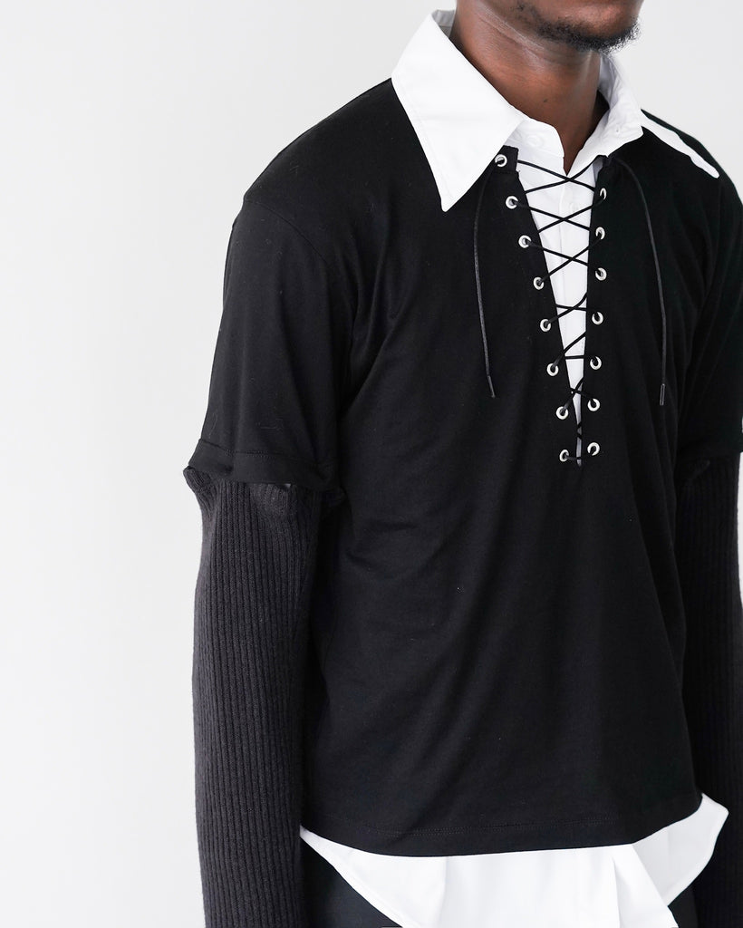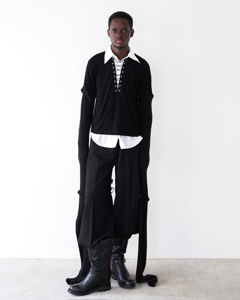 RIB SLEEVE TOP(BLACK)