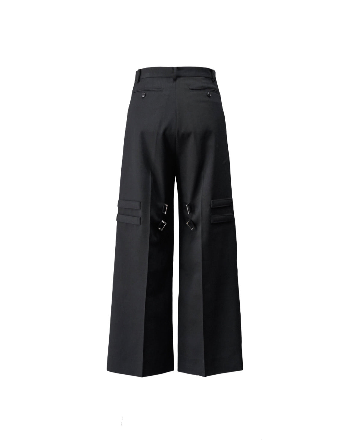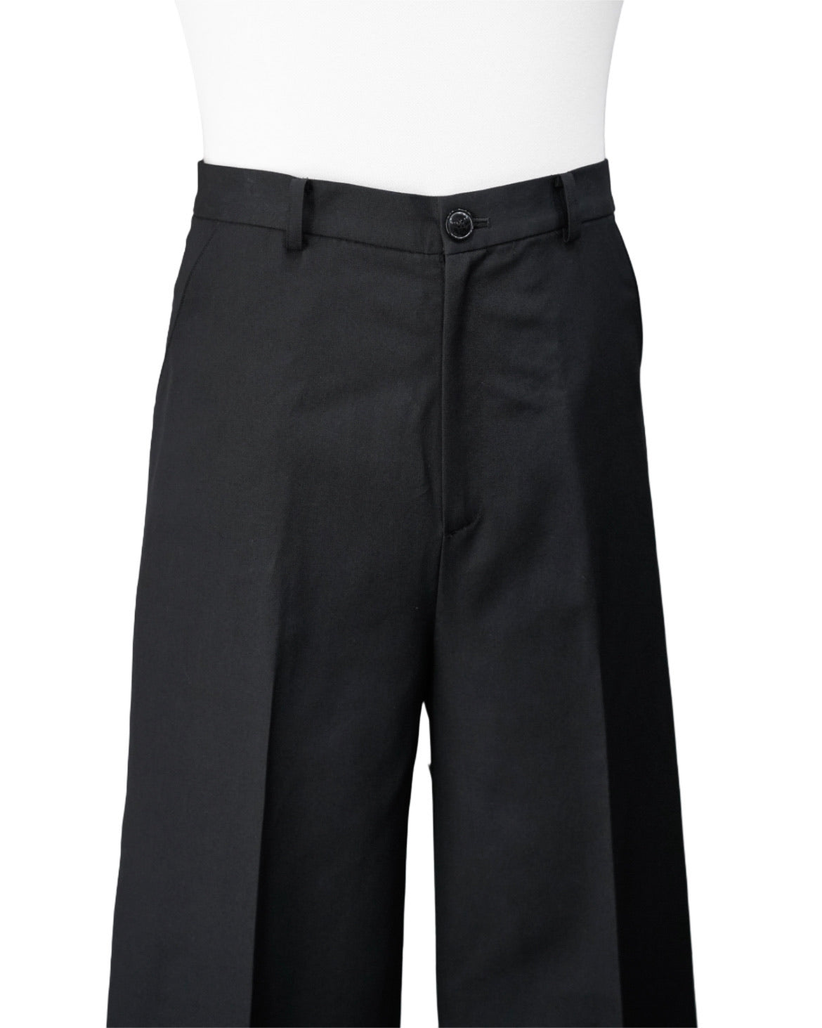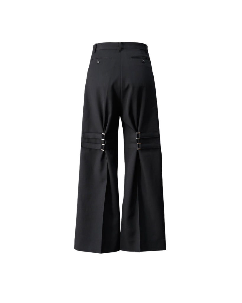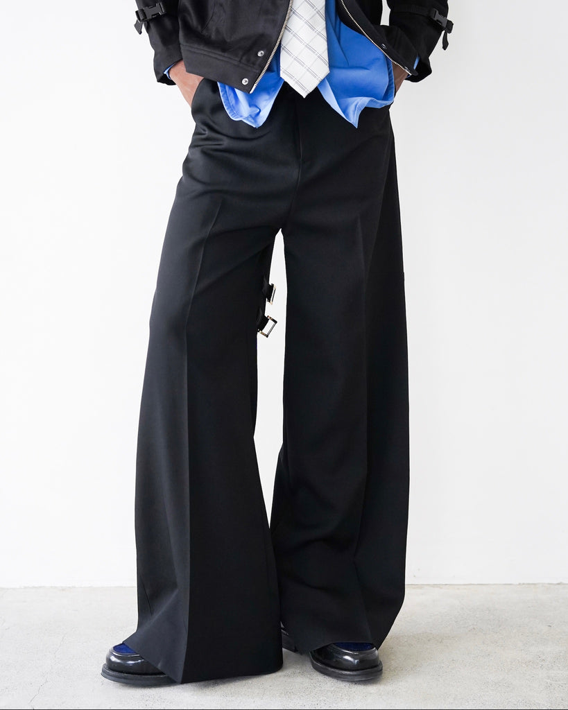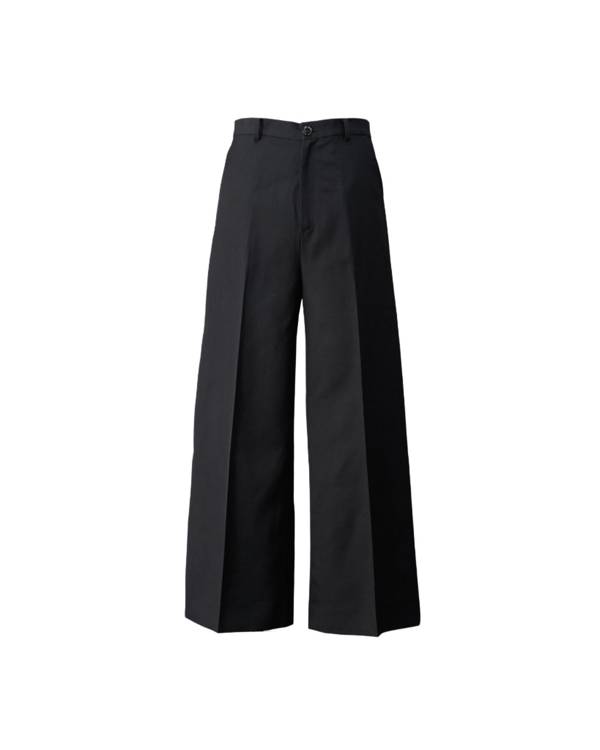 上質なウールドレス生地を用いた、構築的なワイドトラウザー。