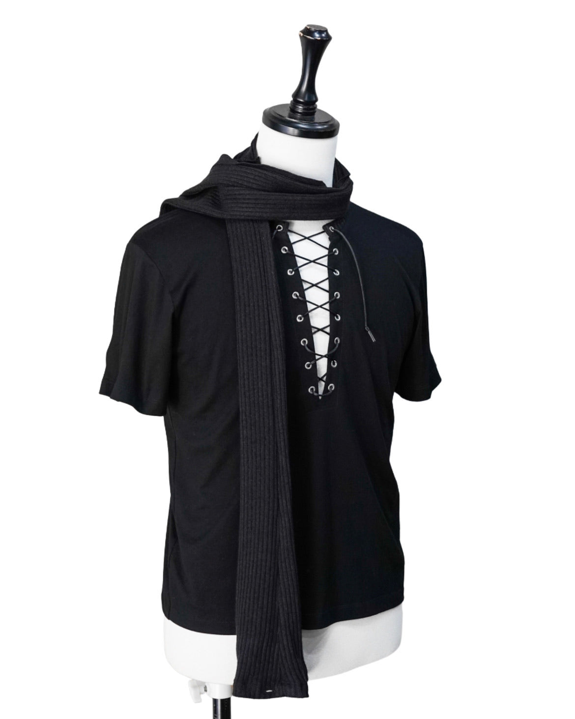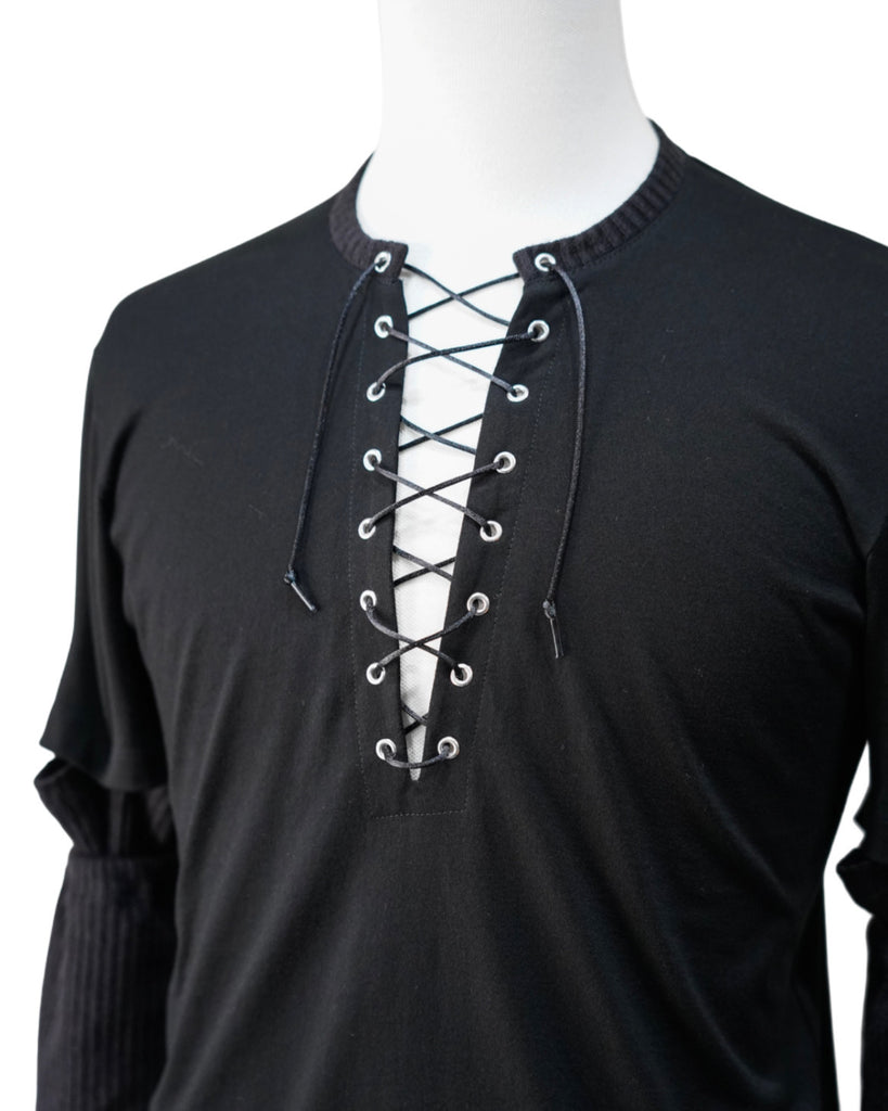 シャープなミニマリズムにエッジを効かせ、フロントに配されたレースアップディテールが、スタイリングに立体感とアクセントを添えます。