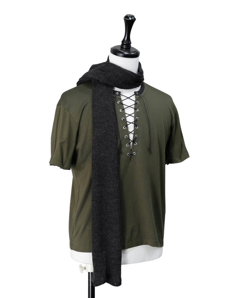 シャープなミニマリズムにエッジを効かせ、フロントに配されたレースアップディテールが、スタイリングに立体感とアクセントを添えます。